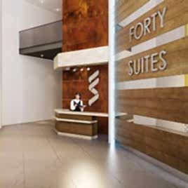 Forty Suites Resepsiyon sistemi ile yönetilip, Konsiyerj Hizmeti, Kat Hizmetleri, Laundry, Fitness Salonu, Pilates, Buhar Odası ve Saunası ile kat maliklerine eşsiz bir yaşam tarzı sunacaktır. Ayrıca teras katında Süs Havuzu ve Mini Kafeteryası ile Forty Suites sahiplerine dinlendirici bir seyir keyfi sunacak şekilde konuşlandırılmıştır.