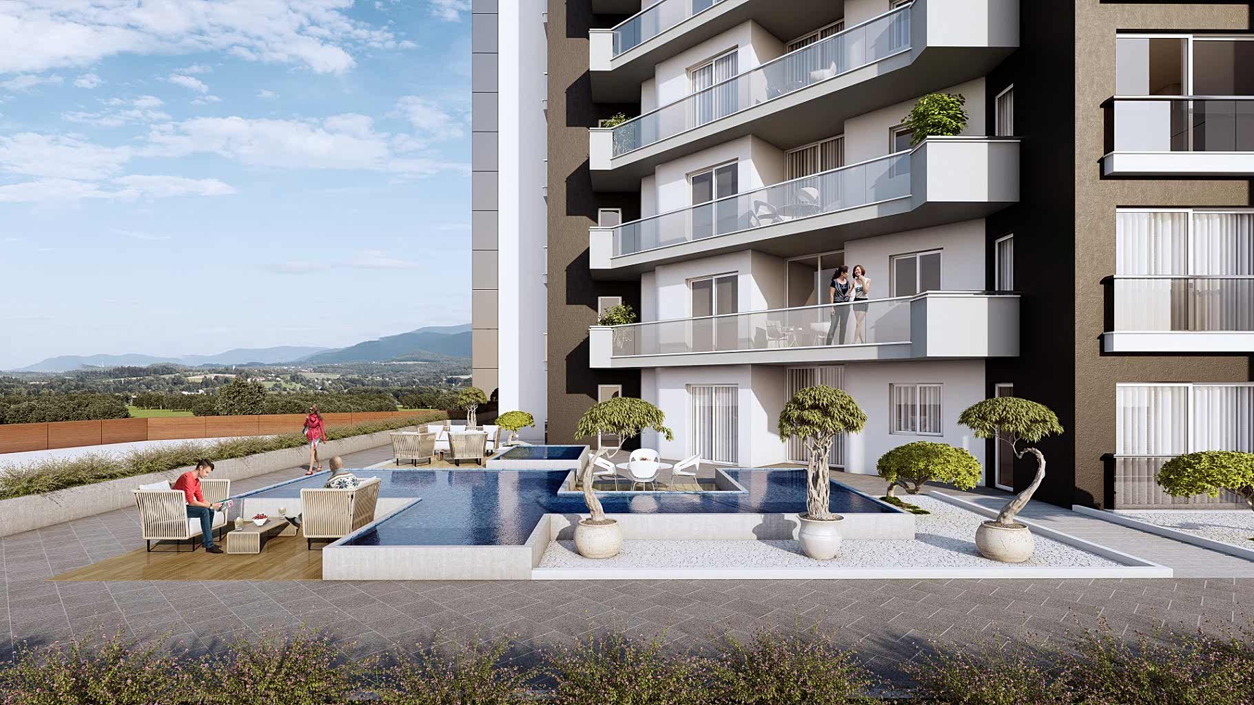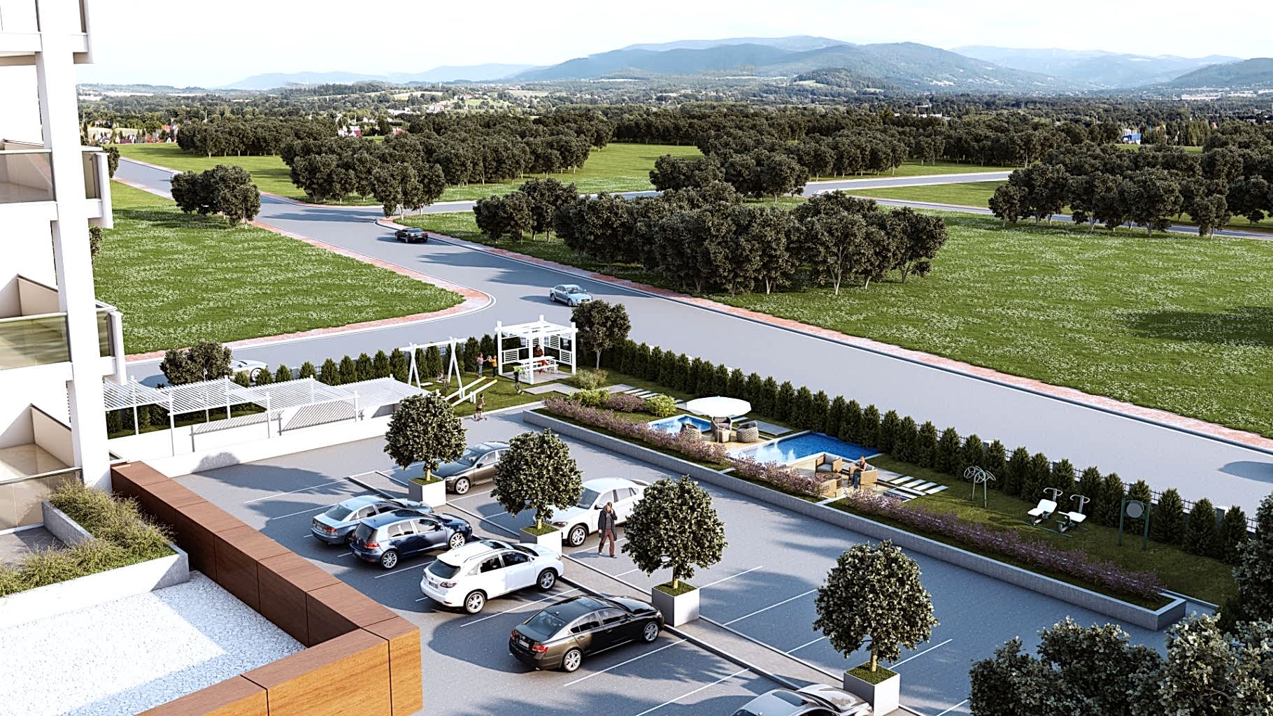 Forty Suites, yeşillerle donatılmış Peyzajı, Çocuk Parkı, Kamelyası, Süs Havuzu, 3 delikli Mini Golf sahası 1500 m² Kapalı, 2000 m² Açık Otoparkı ile yaşam kalitenizi yükseltecek her türlü donanıma sahiptir.