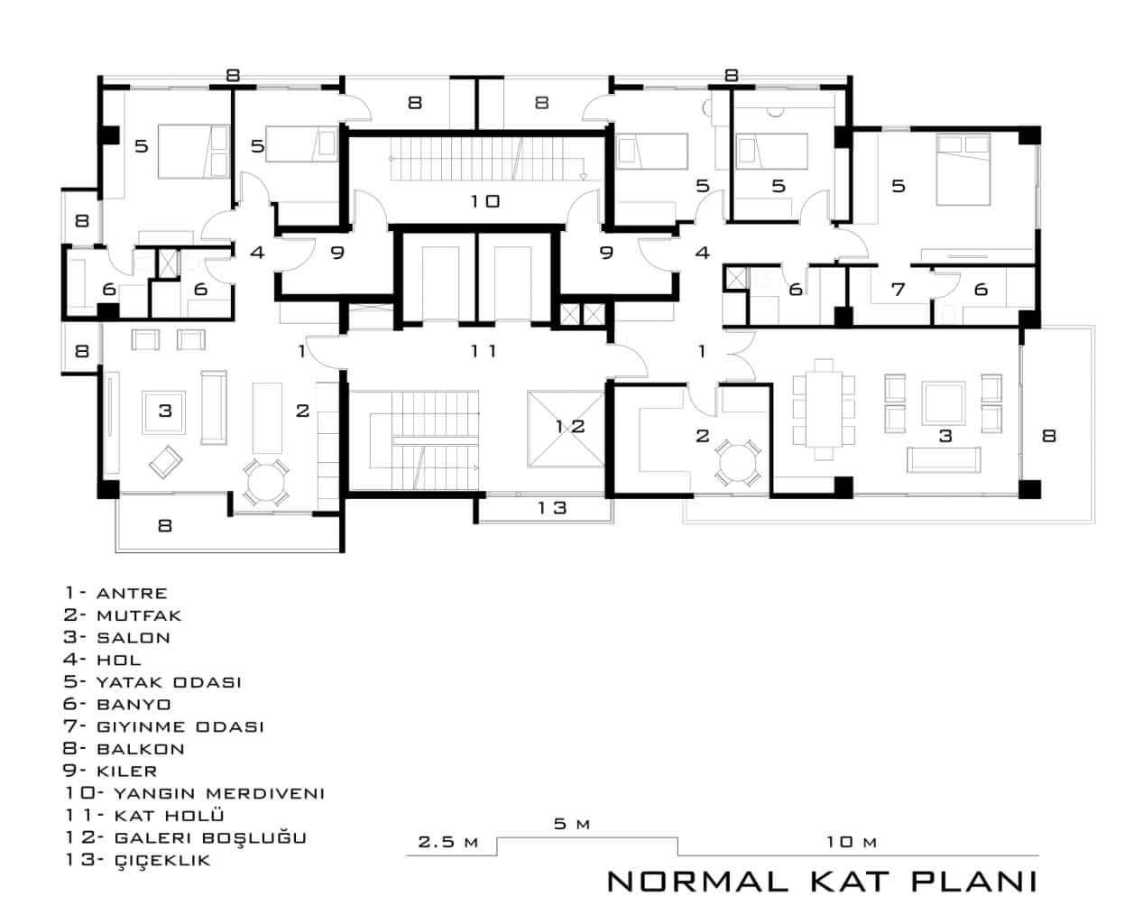 The Key Residence 1 dönüm arsa üzerinde bir bloktan oluşan, Residence katlarında 10 adet 2+1 ve 10 adet 3+1 olmak üzere toplamda 20 adet konuttan oluşmaktadır.