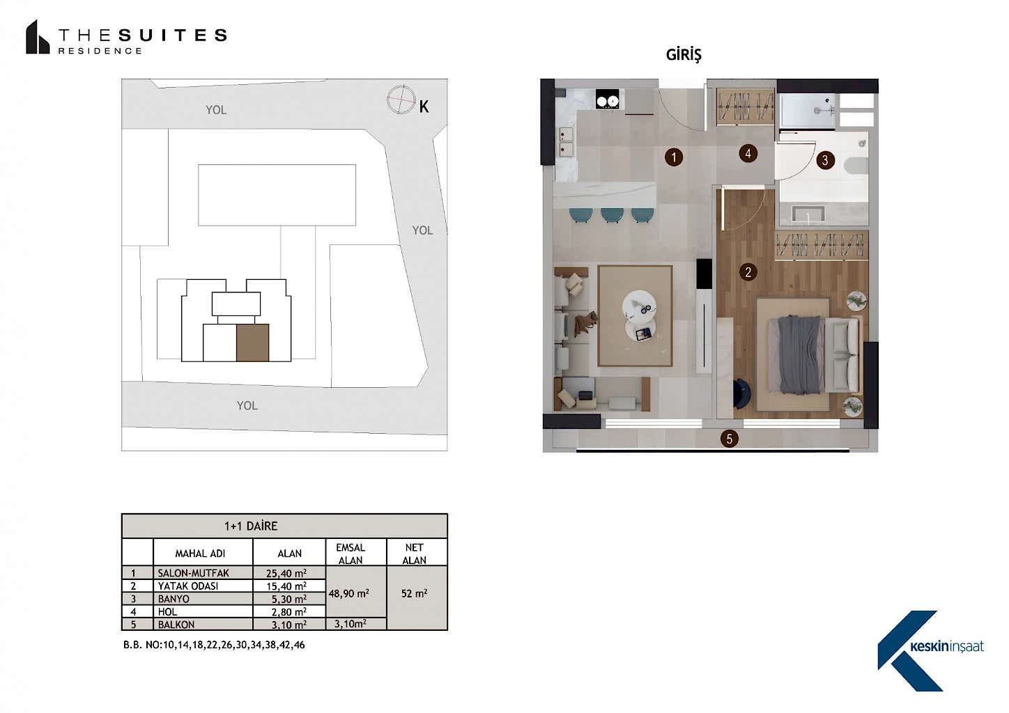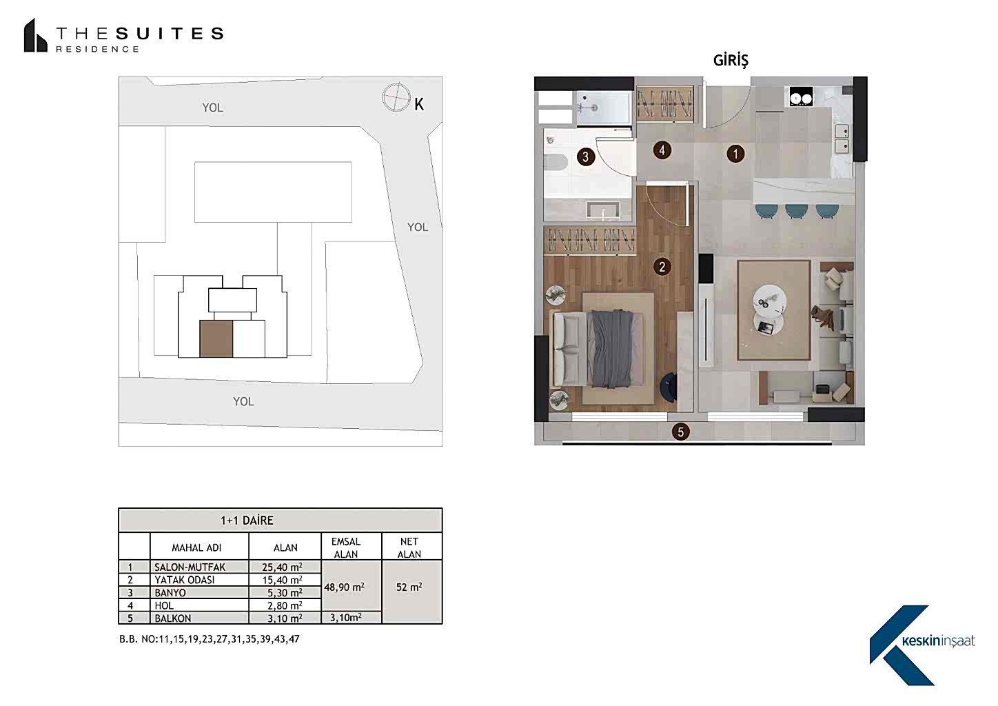 The Suites Residence & The Suites Business projesi Keskin İnşaat’ın prestijli, hayatı kolaylaştıran ve üst düzey yaşam tarzı sunan bir yaşam kompleksidir. Keskin İnşaat’ın çağdaş ve modernist tutumunu yansıtan The Suites Residence & The Suites Business yeni nesil yaşayan akıllı konut ambiyansının ve prestijli iş merkezi anlayışının bölgedeki en önemli projelerinden biridir.
